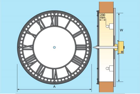 Roman Skeleton dial overall dimensions and typical installation
